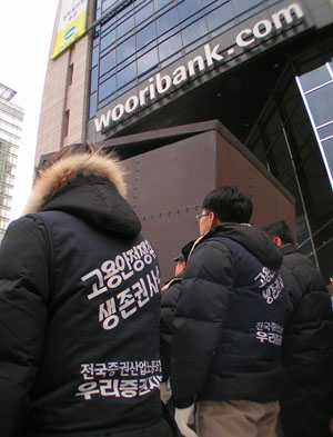우리증권노조는 "파업투쟁의 쟁점은 고용보장이다. 회사는 2년의 고용을 보장한다는 조건으로 희망퇴직 합의를 요구하고 있다. 희망퇴직 숫자에 따라 사람들을 정리해 내고 하는 고용보장이 무슨 고용보장이냐 라고 물으며 회사는 말도 안되는 논리로 억지를 부리고 있다"고 강조했다. 이런 우리지주의 주장은 황영기 회장이 "인위적인 구조조정은 없다"라고 선전하며 뒤로는 희망퇴직, 인력조정, 청산 등을 거론하며 노조 협박 카드들을 악용하는 것과 같은 맥이라는 지적이다. 또한 회사측이 주장하는 희망퇴직은 고용안정 보장의 전제 조건으로, 이러한 희망퇴직의 형태는 올해 다른 증권사들의 명퇴처럼, 인원수 발표 후 표적으로 퇴직을 강요해 강제 퇴직시키는 '찍어내기 식 퇴직'이 될 것이 명확하다. 그렇기에 노조는 우리지주회사에 조건 없는 '고용안정 협약 합의서'를 요구하고 있는 것이다.