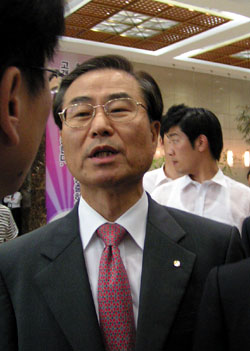 ▲ 농성장에 나타난 박종수 사장. '폭력적 강제철거 책임지라'요구하자 '왜 반말하냐'며 엉뚱하게 도발하기도 했다. 결국 용역들에게 둘러쌓여 서둘러 자리를 피할 수밖에 없었다. |