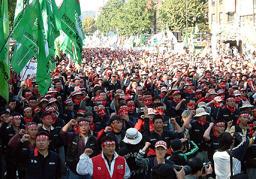 ▲ 10월 16일 대학로에서 열린 하반기 투쟁 승리를 위한 민주노총 결의대회 장면 |