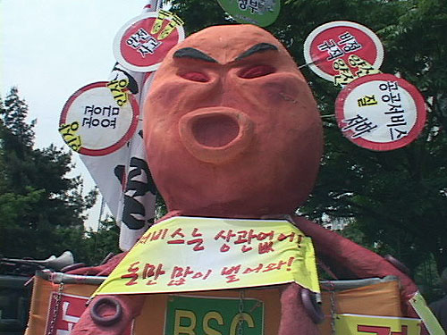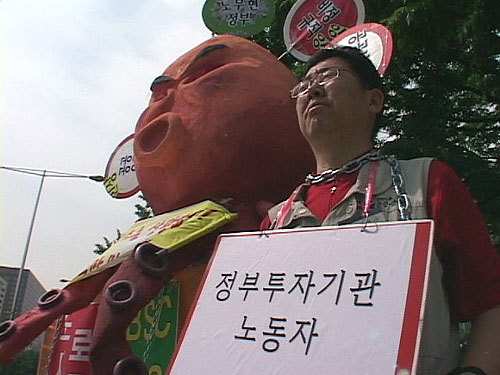 ▲ 공공연맹은 정부가 공공부문 노동자들을 어떻게 탄압하는가에 대한 상징물을 준비했다. |