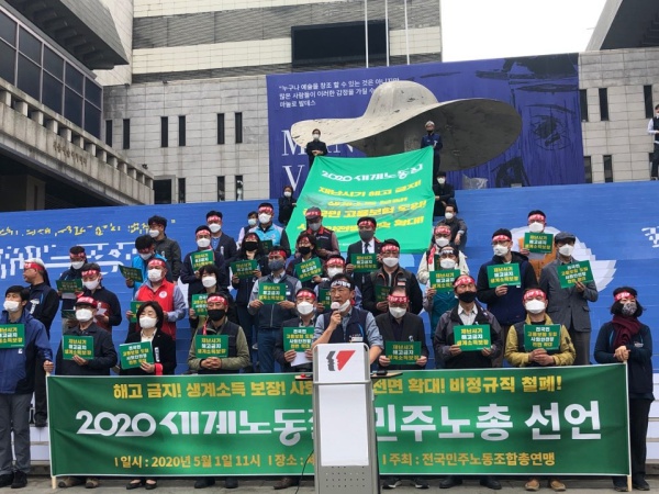 민주노총은 2020 메이데이 민주노총 선언문에서 “올해 노동절은 전 세계 노동자가 전례 없는 아픔과 고통 속에서 맞이하고 있다”라며 “속도의 차이는 있지만 ‘유급연차, 무급휴직, 권고사직, 정리해고’가 공식화돼 영세 노동자, 비정규직 노동자부터 급격하게 고용위기에 빠져들고 있다. 항공, 관광, 요식업에서 시작되고 있는 3월에 22만명 이상이 일자리를 잃는 등 고용대란이 현실화되고 있다”고 우려했다.