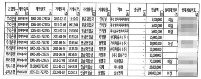▲ 국발협 명의의 우리은행 및 하나은행 계좌 내역 |