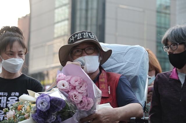 아울러 그는 앞으로도 삼성과 맞서 싸울 동지들에 대한 미안한 마음을 전했다. 김용희 씨는 “저는 제 문제보다 삼성 암보험 문제가 먼저 해결되길 기도하고 기도했다. 제 자신이 부끄러워서 암 환우님들의 눈을 못 맞추겠다. 너무나 속상하다”며 “재개발, 재건축 과정에서 하루아침에 길거리에 내몰린 과천 철거민 문제, 17년째 삼성 물산을 상대로 힘겨운 싸움을 하고 있다. 삼성이 사회적 책임을 다할 수 있도록 관심을 부탁드린다”라고 전했다.