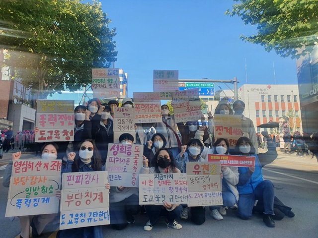 ▲ 지난해 10월 20일 민주노총 총파업 당시 전교조 유전초분회 단체사진. [출처: 전교조 유전초분회] |