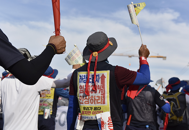 김: 누가 중심에 섰느냐, 누가 이 투쟁을 가져가서 끝까지 할 수 있는가가 중요하다고 본다. 민주노총을 중심으로 시민 사회가 함께 붙고, 이런 거 아니면 금속 중심으로 민주노총이 이 투쟁을 안으면서 시민사회단체가 옆에서 같이 어우러지고 이런 것보다도 그냥 한 목소리로. 그게 하나의 이름이든 공동의 이름이든 나열되어 있든 그런 건 중요하지 않다고 생각한다.