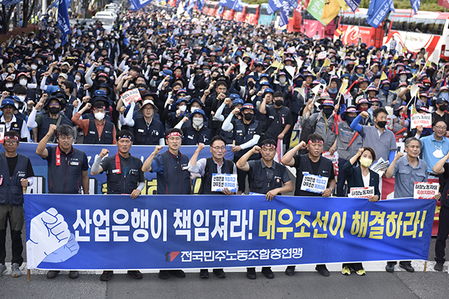 (대우조선 지회는 7월 10일에는 조선하청지회에 7월 12일까지 농성을 풀고 산업은행을 상대로 함께 싸우자는 제안을 <새벽함성>에 실었다. 대우조선 지회 소속이기도 한 일부 대의원들은 조선지회에 대해서 비정규 파업을 정리하지 못하면 탈퇴하겠다고 압박을 가하는 한편, 파업농성장과 고공농성자들에 물리적으로 파업 파괴행위를 서슴지 않고 공개적으로 지속하고 있다.)