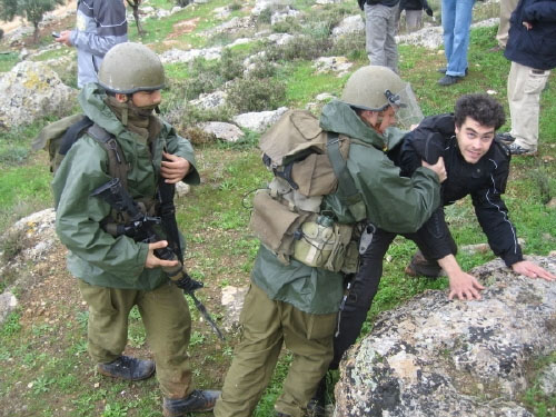 군인들이 최루탄을 쏘자 이스라엘에서 온 몇몇 활동가들은 아주 대차게 군인들에게 항의를 했습니다. 무슨 말인지 알아들을 수 없었지만 분위기로 봐서 최루탄을 쏘지 말라고 하는 것 같았습니다.