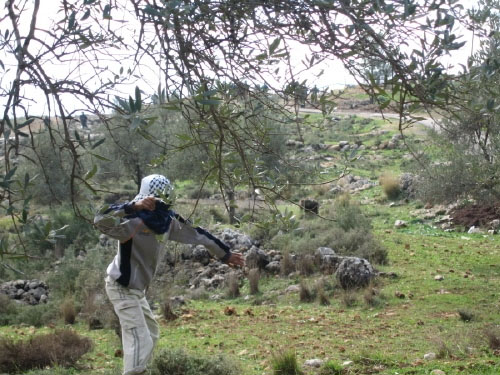 그런데 다른 편에서 갑자기 총소리가 나서 돌아보니 산 저편에서 사람들이 돌을 던지고 있었고 아래편에서는 몇몇 군인들이 나무 뒤에 몸을 숨기고 총을 쏘고 있었습니다. 처음에는 실탄인지 공포탄인지 알 수가 없었지만 나중에 찍은 사진을 팔레스타인인에게 보여 주었더니 속은 금속이고 겉은 고무로 된 고무 총탄이라고 했습니다.